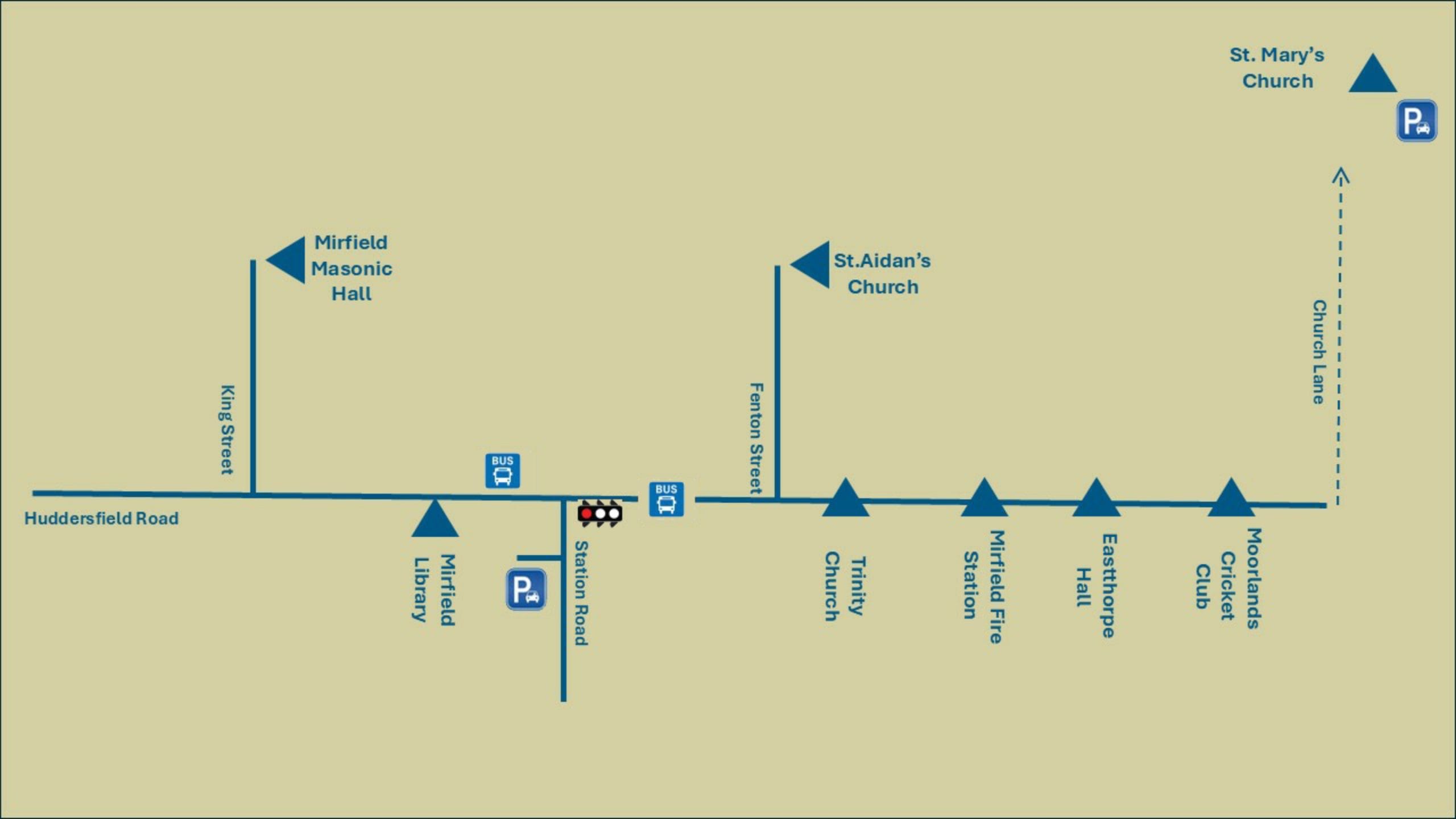 If you feel the distance may be too far, you are welcome to use our coach. It will depart from St Mary’s Church shortly after the opening concert and will take you to the bus stop next to Trinity Methodist Church in the centre of Mirfield. From there, it is less than a 5‑minute walk to the other venues.